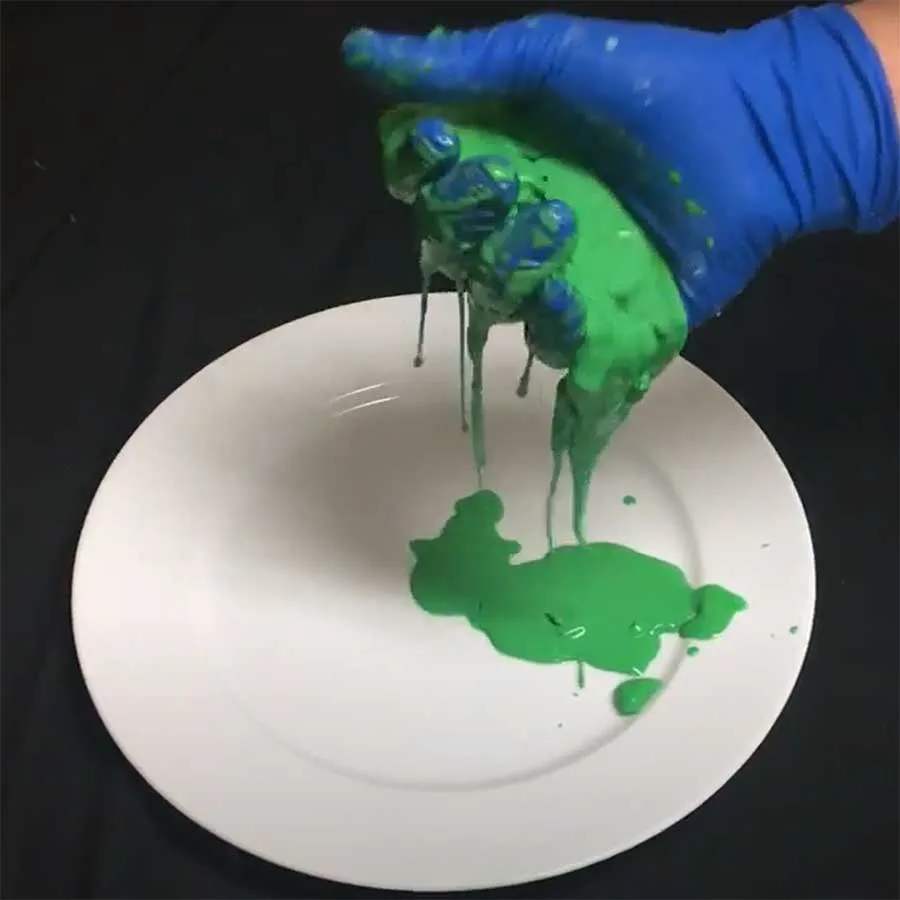 Oobleck, also called a non-Newtonian fluid or quicksand, is a slime which is both a liquid and a solid!