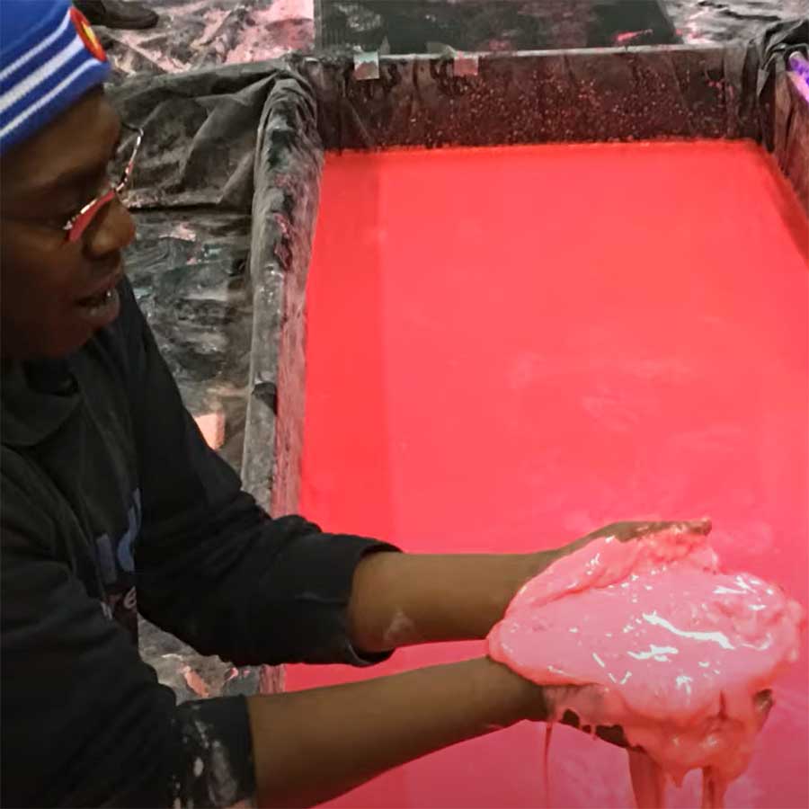 PurColour Oobleck can be easily cleaned by wiping with a wet cloth or paper towel. If left to dry, it can be vacuumed or swept and any remaining colorant removed with a wet cloth or paper towel.