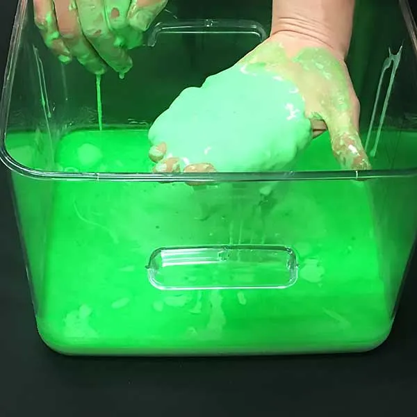 Oobleck can be used in large area applications such as in a shallow pool for obstacle course and endurance races, color runs, or just for a fun science project.