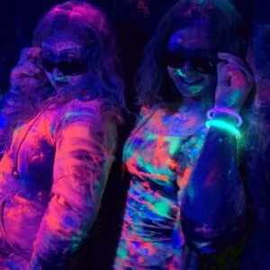 Have a blast with New PurColour Party Paint! Great for indoor black light paint parties, splatter rooms, outdoor color runs or a backyard paint battle with friends and family. PurColour Party Paints are ultra vibrant neon colors in the daytime and have a radiant UV glow under black lights.