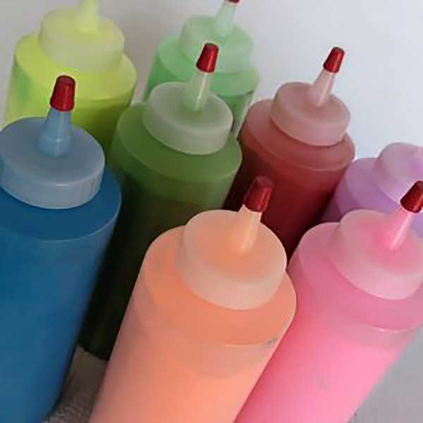 Squeeze bottles are a great and inexpensive method to disperse PurColour color powder!