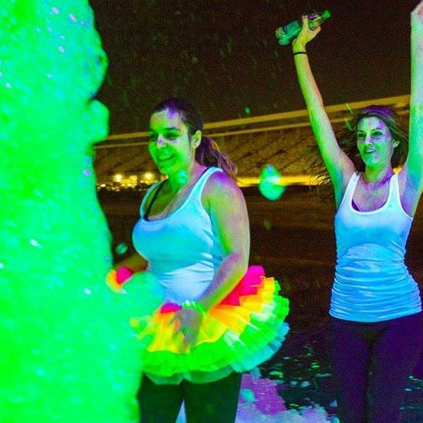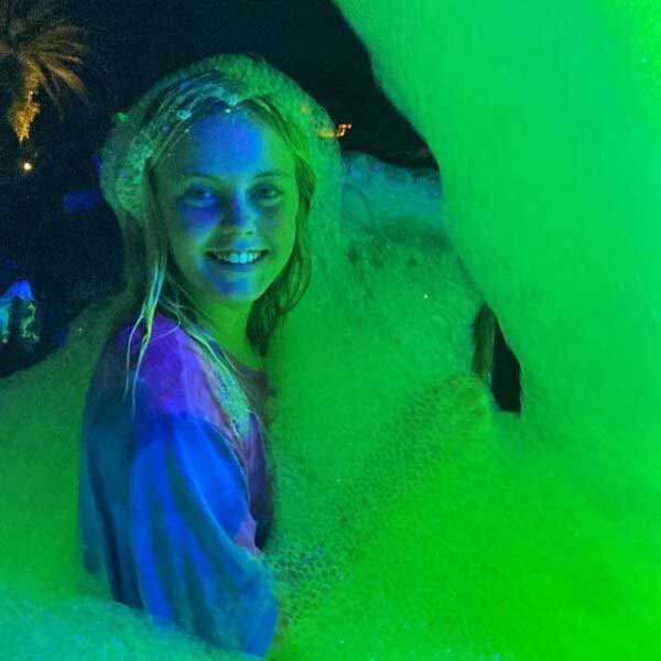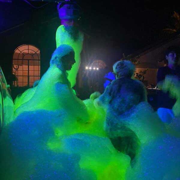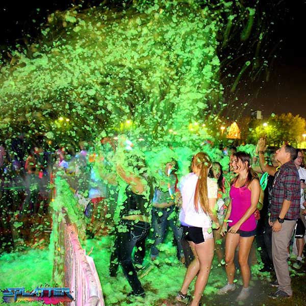 PurColour’s UV Fun Foam Powder is a great way to enhance your foam party experience! Just mix it with your water and foam solution and your foam will take on a fantastic yellow/green color. But wait! As the sun sets and the black lights come on, it will glow an amazing iridescent green and will extend your foam party far into the night!